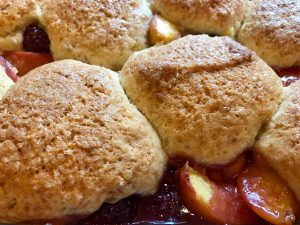 Peach and Blackberry Cobbler with Crystalized Ginger