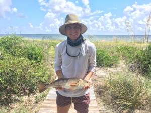 Brother caught a redfish on his fly rod the other day, and we ate it a few hours later baked on the half shell with just salt and pepper and a little olive oil.