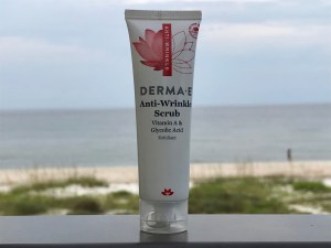 This is how I clean up at the end of the day. Derma-E Anti Wrinkle Scrub has marine plant extracts, vitamin A, glycolic acid, apricot seed powder and papaya to smooth and really, really exfoliate. Another multitasking product!