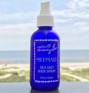 Finally, a product called Captain Blankenship Mermaid Sea Salt Hair Spray almost screams to go on a beach trip. I spray it onto damp hair and scrunch. It’s made with Atlantic sea salt (for after I wash out the Gulf of Mexico sea salt) as well as organic aloe vera and sea kelp and essential oils of geranium and palmarosa. Because beachy waves should smell nice.