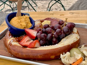There are four large boards that are meant for sharing. The snack board has a giant pretzel, beer cheese, apple butter, summer sausage, butterkäse, dill-pickled vegetables and fruit. The larger German board features bratwurst, Hungarian sausage, cheddarwurst, a pretzel, Bavarian potato salad, chow-chow, beer cheese, pickled veggies, sauerkraut, yogurt-dill cucumbers and haus mustards. Then there’s the Kummerspeck, which Schmidt says translates to “emotional over-eating” and features s’mores, apple strudel, black forest cake roll and vanilla ice cream.