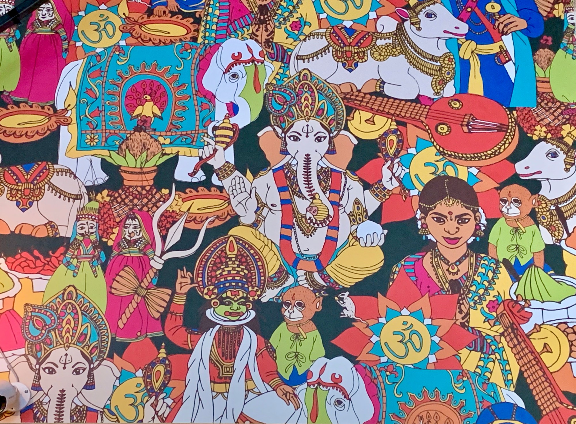 Inside the comfortably fancy Five Points location, which reopened mid-June, a chic, mirrored bar sparkles across the room from an original textured wall that indicates this building has some history. Soft lighting illuminates a large, colorful mural that depicts the diversity of India—the regions, religion, culture, art, clothes and people. It’s a fitting backdrop for a fragrant and spicy curated trip across the subcontinent.