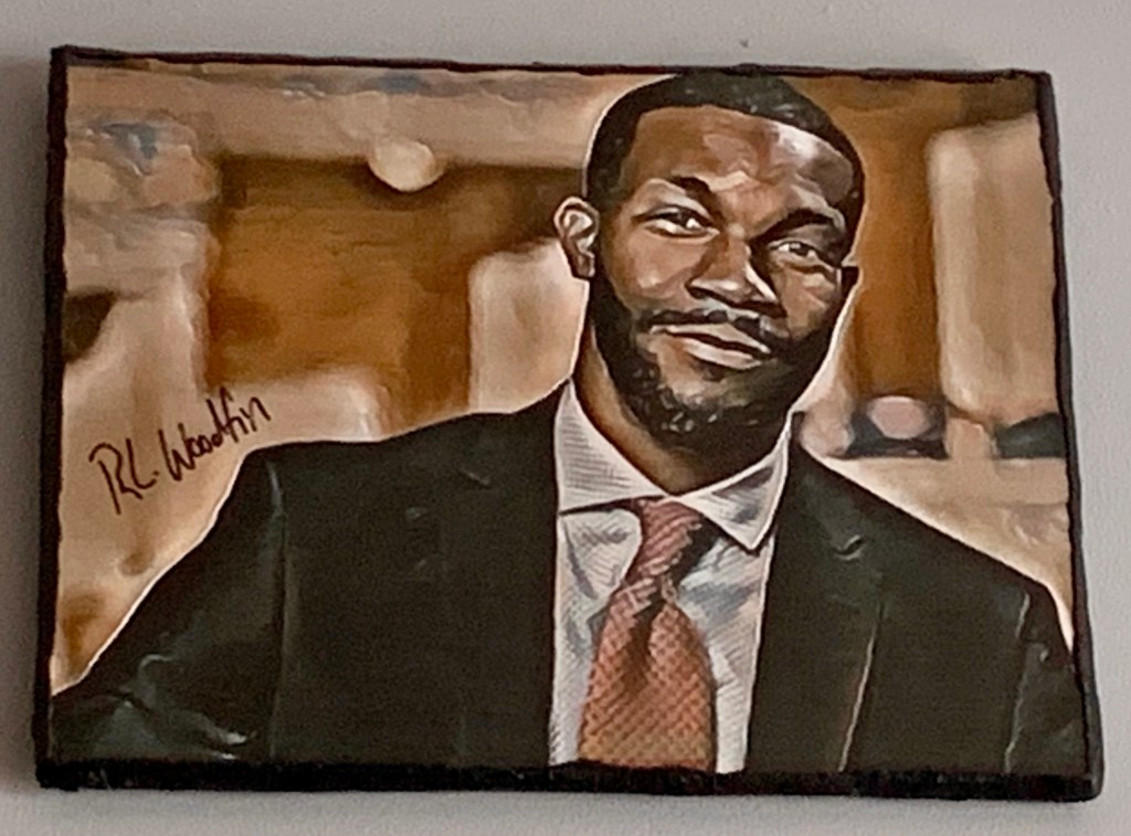 Executive Art, with its canvas prints of famous and local people (or whatever you want), started when some friends of Harvill’s said, “‘Hey, you need some paintings. Here’s a couple of them. If you sell them, great. If you don’t, they’ll just hang on your wall.’ That grew to us selling almost four or five pieces a week of this wonderful artwork,” he says.