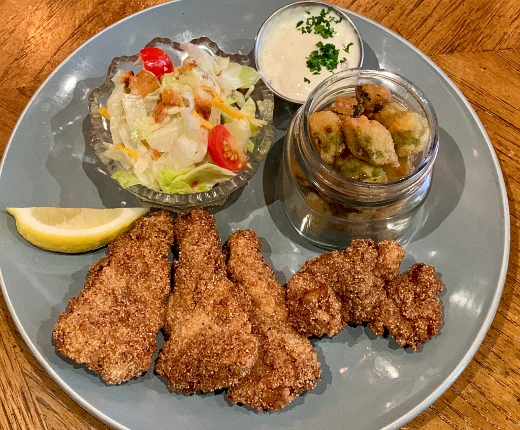 That translates to homemade pimento cheese, crab cakes with a house remoulade, and their own take on shrimp and grits made with a Cajun cream sauce and polenta. There’s a burger and catfish or shrimp po’ boys; fish and chips made with fresh grouper; an Oxfordian salad with feta, berries and roasted pecans atop fresh greens; a hand-cut 12-ounce rib eye and an 8-ounce filet, and chicken Marsala. You’ll also find country cooking like chopped steak, fried chicken and catfish as well as meatloaf. Do not miss the award-winning collards.