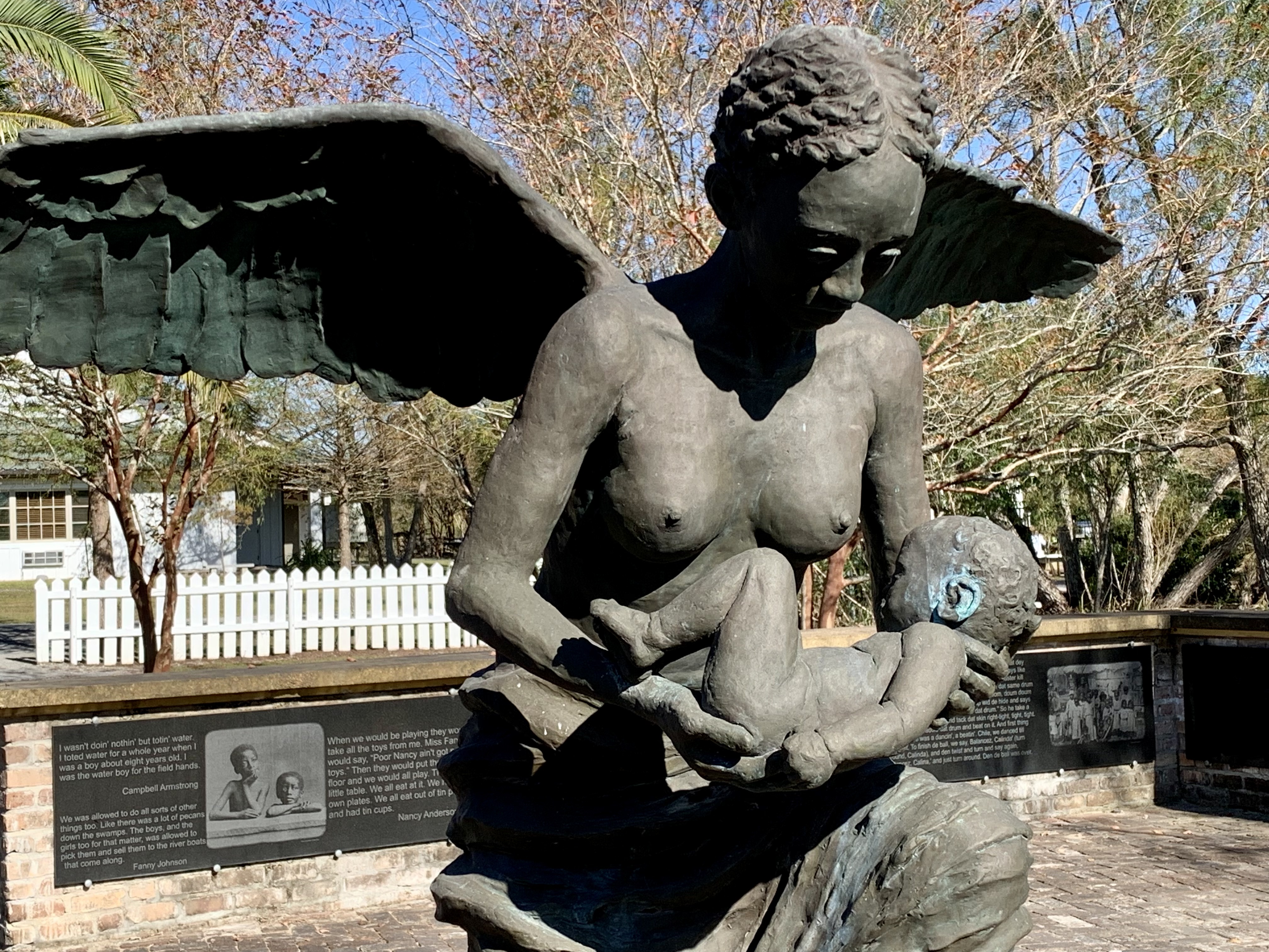 The Big House (one of the earliest raised Creole cottages in the state and one of the best-preserved Creole plantation houses on the River Road) is open to visitors; so are some of the slave cabins and other outbuildings. Beautiful but chilling hollow-eyed, terracotta statues of The Children of the Whitney haunt these grounds. The Field of Angels children’s memorial is heartbreaking yet lovely. It is dedicated to 2,200 enslaved children who died in St. John the Baptist Parish between the 1820s and the 1860s. That’s not a long time. The Wall of Honor is a memorial dedicated to all the people who were enslaved on the Whitney Plantation. The names and the information related to them (origin, age, skills) were retrieved from original archives and engraved on granite slabs. The larger Allees Gwendolyn Midlo Hall is the name of the memorial dedicated to the 107, 000 people enslaved throughout Louisiana and documented in the “Louisiana Slave Database” built by Ms. Hall.