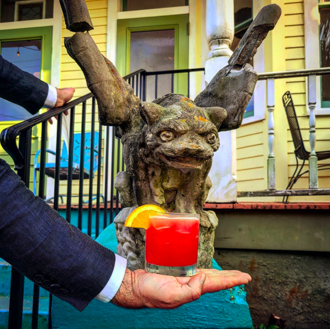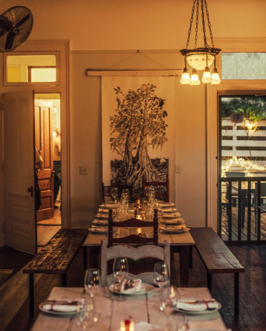 So, we went to Melisssa Martin’s restaurant, which is in a little Victorian cottage in Uptown. It’s filled with antiques; handmade furniture; and paintings by her brother Leslie, who is also a jazz pianist. Each night—Thursday to Sunday, September to June—Melissa does one communal seating (and two private ones). We were divided between two tables of 10 in adjoining rooms. Everyone enjoys the same multicourse menu. You can add wine pairings if you’d like. We did like.
