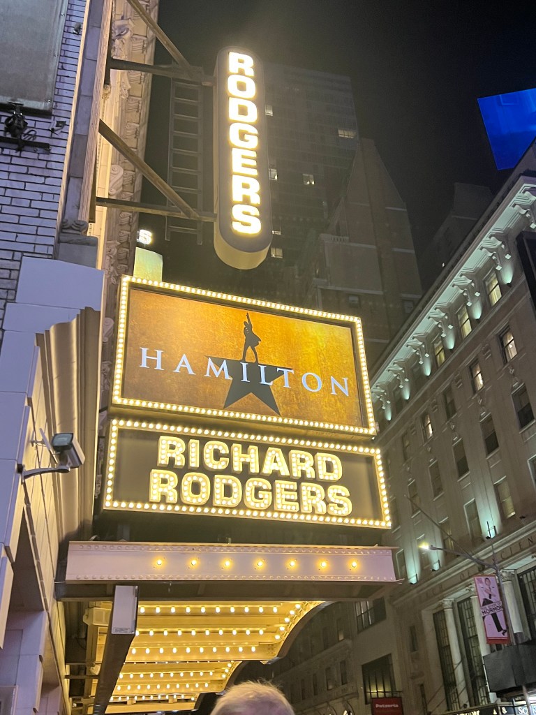 While my fellow conference attendees went to dinner at One Fifth, I walked from the hotel, through Times Square (selfies!) to see Hamilton at the Richard Rogers Theatre. I know all the songs of this musical from road trips with my youngest child, but I had not actually seen the show—not even on Disney+. I waited for the real thing, and it was worth the wait—better than I ever imagined. I had a cocktail party to attend after the performance, so I tried not to cry. Impossible. I loved every minute of this evening, including the bag of Lays potato chips I had for dinner during intermission.