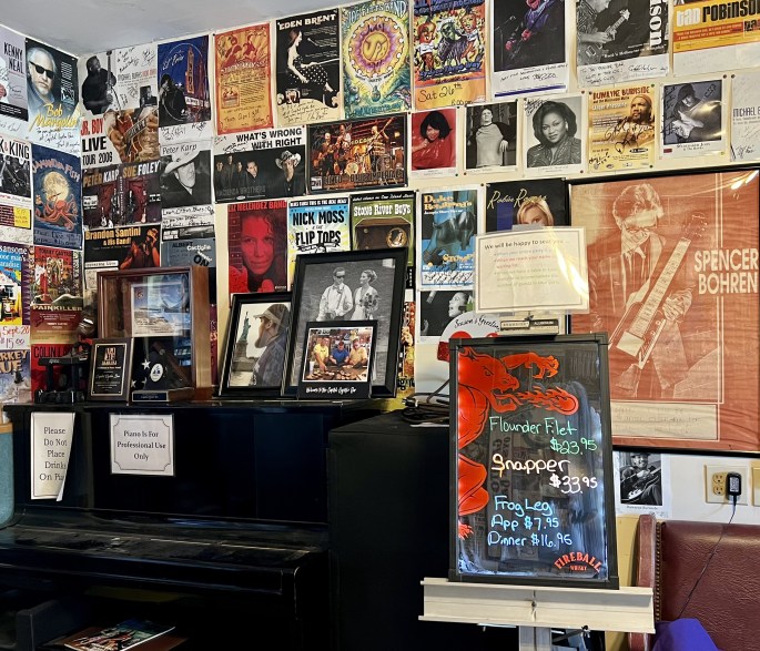 You’ll enter through a front room papered with autographed playbills and photos of the blues legends who have played here. Names like Bobby “Blue” Bland, Guitar Shorty, Bob Margolin, Marcia Ball, Bobby Rush, Michael Burks, Charlie Musselwhite and Peter Karp.