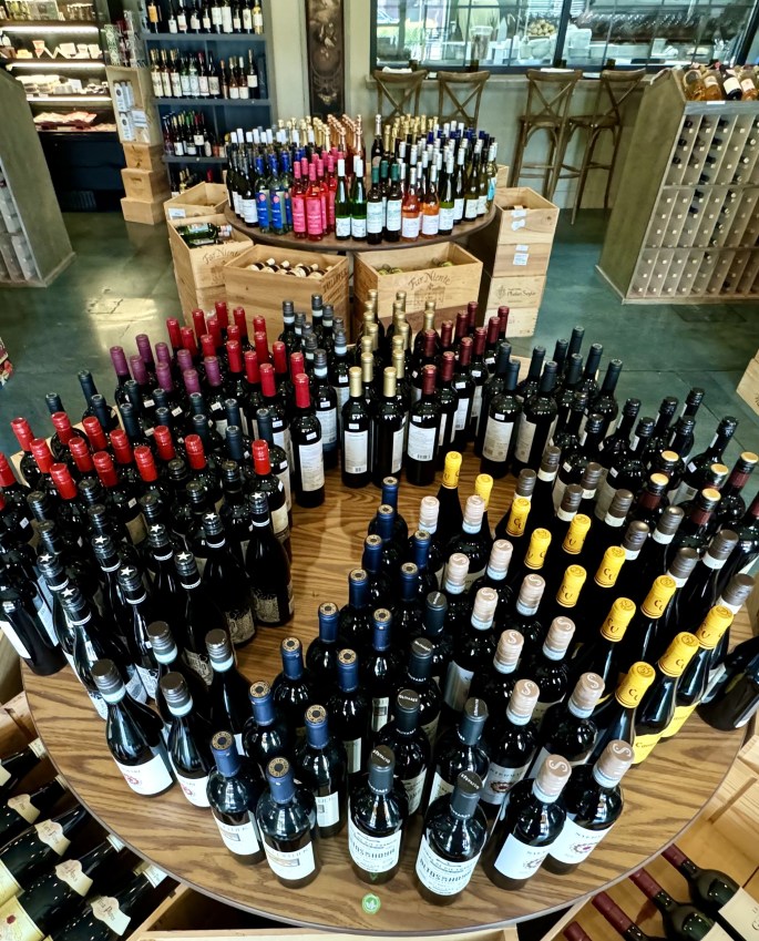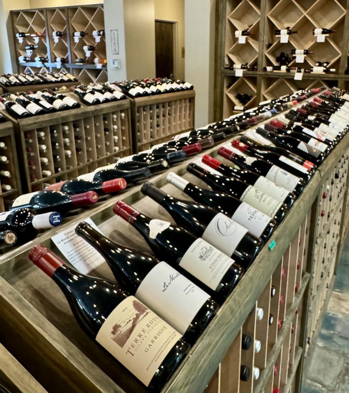 The retail shop features a wall of collectible wines and another with magnums and special bottles sure to make a splash when you serve them. Most of the space is filled with row upon row of custom-crafted shelves of nicely priced wines from all over the world. There are wine buckets, wine charms, wine glasses and corkscrews. There are cheeky cocktail napkins and a cooler full of curated grab-and-go gourmet foods including cured meats, specialty cheeses and wildly popular Fishwife tinned fish.
