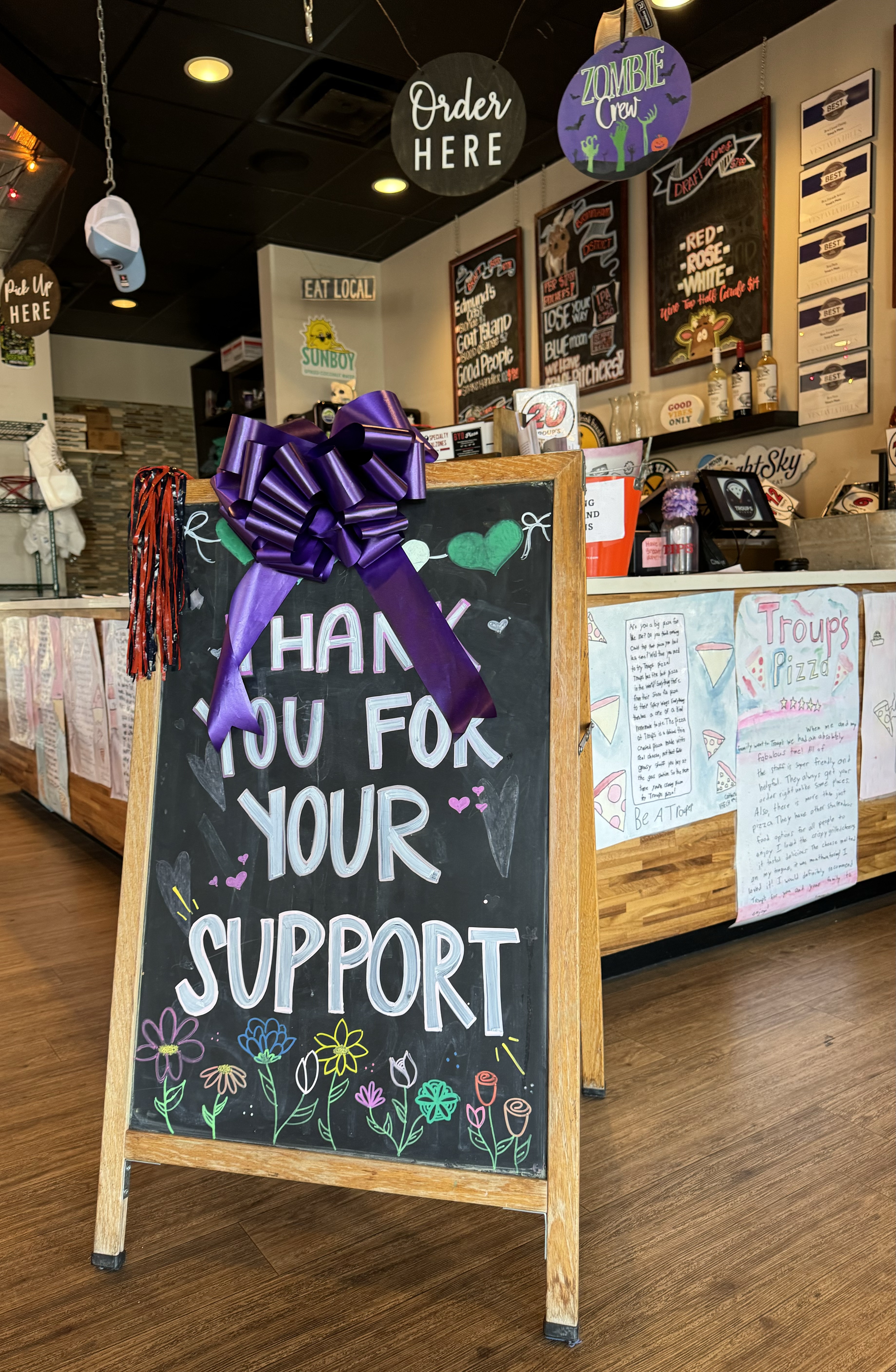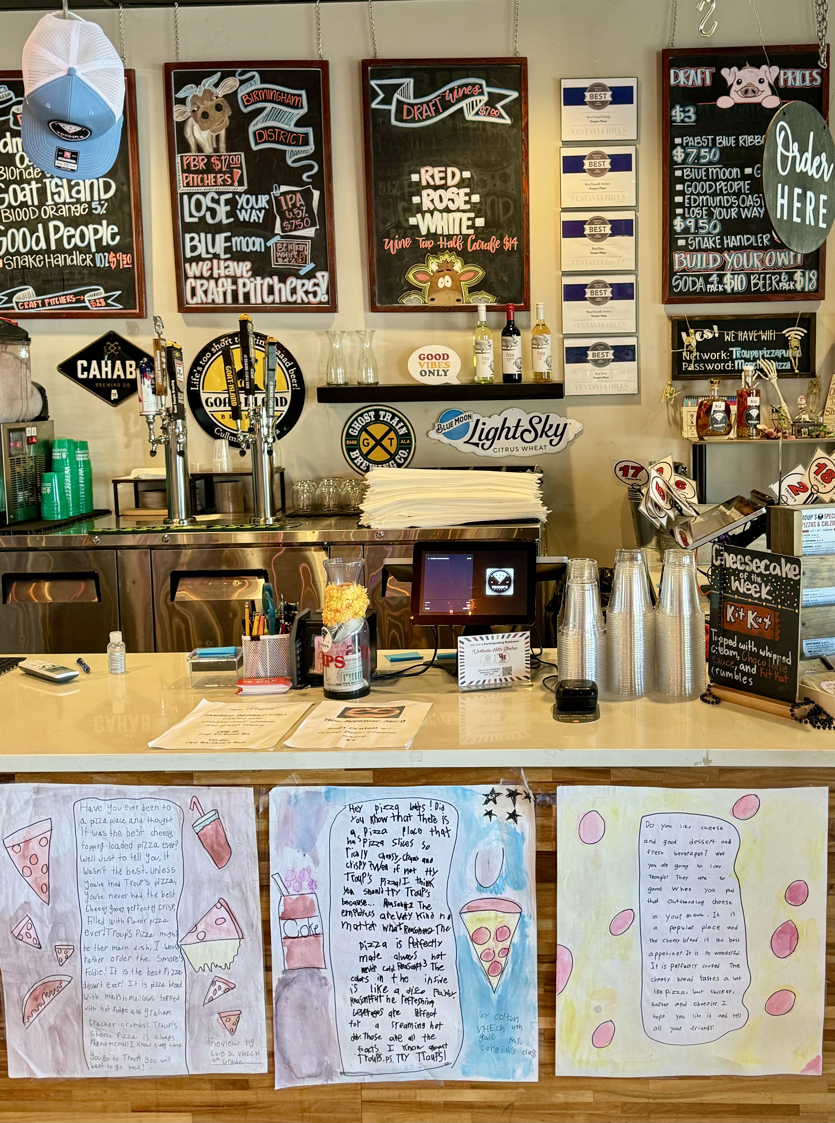 When the deadly tornado struck Selma in January 2023, they immediately packed up a truckload of supplies and went to help. They regularly sponsor the summer reading program at the Vestavia Hills Library in the Forest as well as soccer at SHAC (Sicard Hollow Athletic Complex). Kids from the nearby Cahaba Heights elementary school do classroom projects based on visits to Troup’s. (You’ll see their handwritten letters displayed on the counter.)