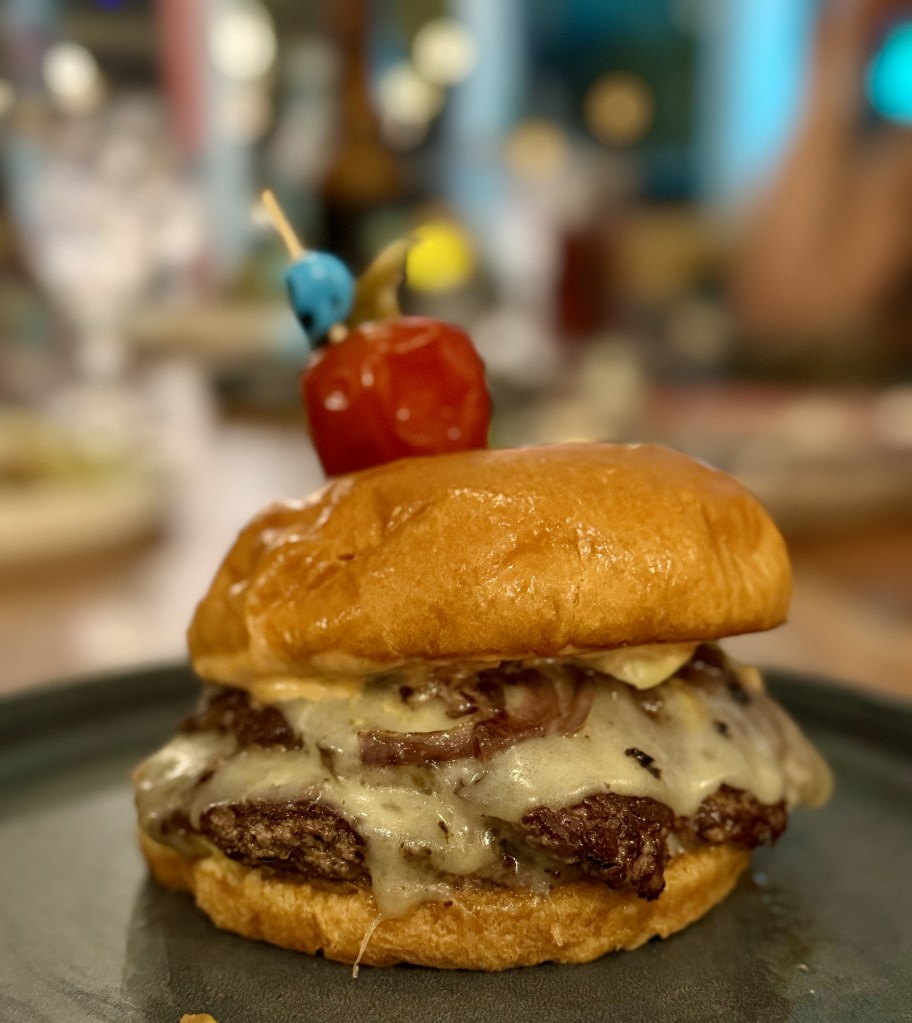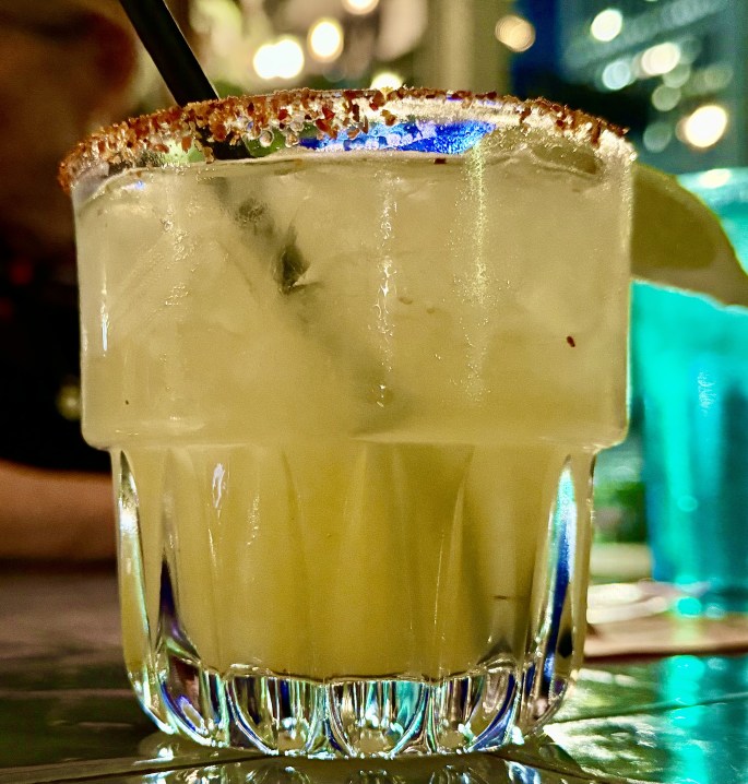 We started with Palomas (reposado tequila, maleza cempasuchil, grapefruit, yuzu, hibiscus and pink peppercorn syrup with a black-pepper-and-salt garnish the length of our tall glasses) and ended with espresso-infused carajillos. And there were shots of sotol (made from dasylirion, a desert succulent) in between. We sampled the quesa birria tacos with squid ink corn tortillas and miso consommé, cucumbers dressed in a sweet and spicy salsa macha, mussels and escabeche, classic green aquachile with wild shrimp from Mexico, flautas with deep and rich mole, and green chorizo vampiro (a marrow bone topped with green-chile chorizo over a tortilla caramelized with queso and salsa macha). We unabashedly passed the Smashy Burger with homemade spicy chayote pickles from hand to hand around the table. We also all enjoyed the MSG (chef’s choice of meat, sauce and garnish), a large-format dish that changes frequently but was dry-aged Duroc pork tomahawk when we visited.